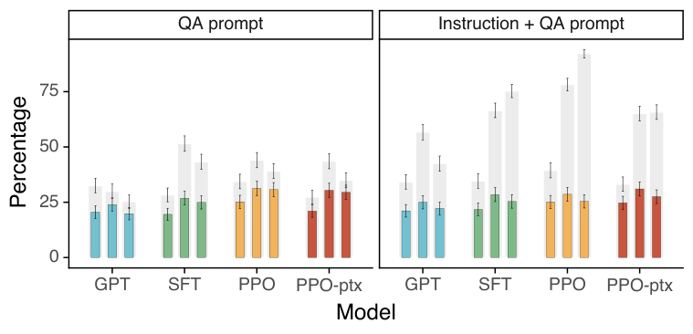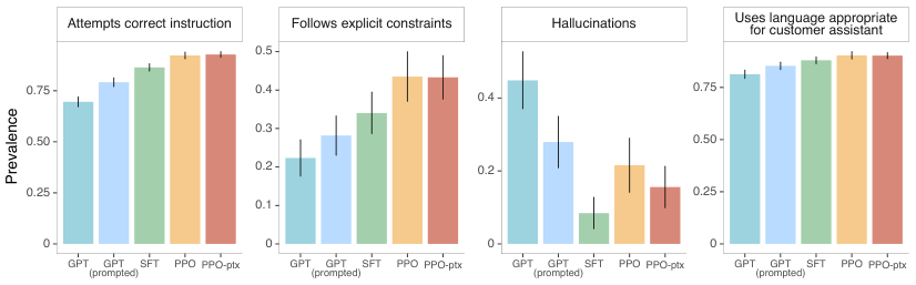 | GPT models | SFT models | PPO models | PPO + ptx models | ||||||||||||